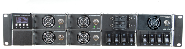 - Intelligent 2U Power System with Dual-Breaker Battery Management Module, 24VDC 700W DC Converter Module and one Load Distribution Module (-48V)